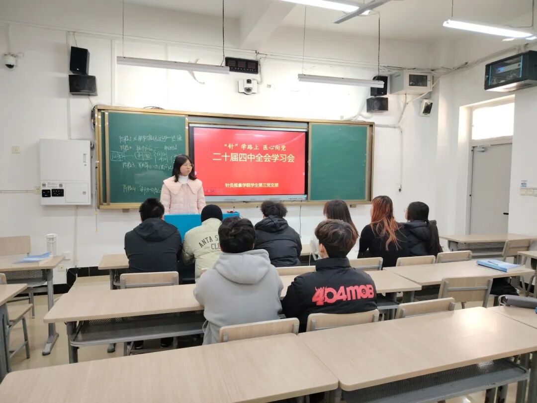 为深入学习贯彻党的二十届四中全会精神,筑牢学生党员的思想根基,强化纪律意识与担当精神,近期,针灸推拿学院学生第三党支部组织开展了“‘针’学路上,医心向党”系列活动。活动聚焦政治引领、精神传承和实践育人,通过多层次的学习与实践,引导支部成员坚定理想信念,提升综合素养,取得了良好效果。