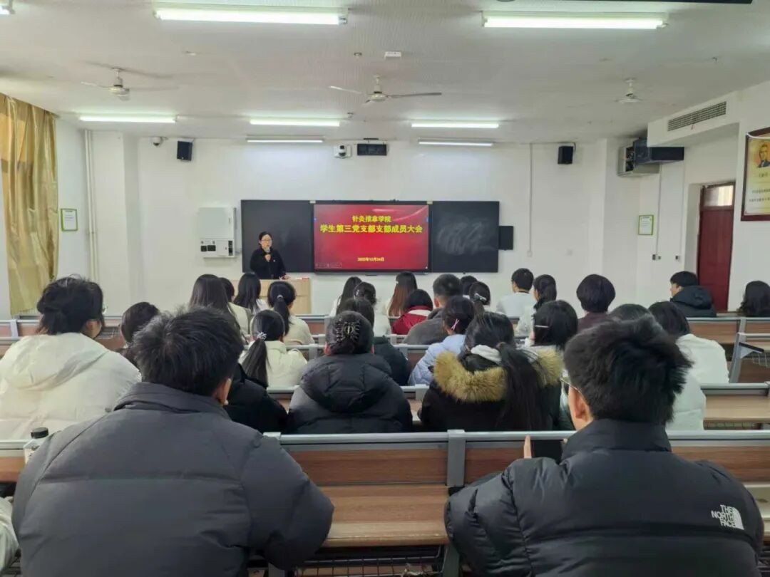 2026年1月4日,学生第三党支部在5307教室召开了支部成员大会,会议围绕学生成长、支部建设与发展规划展开深入交流。支部全体党员、预备党员及入党积极分子参加了会议,会议由党支部书记高亚儒主持。