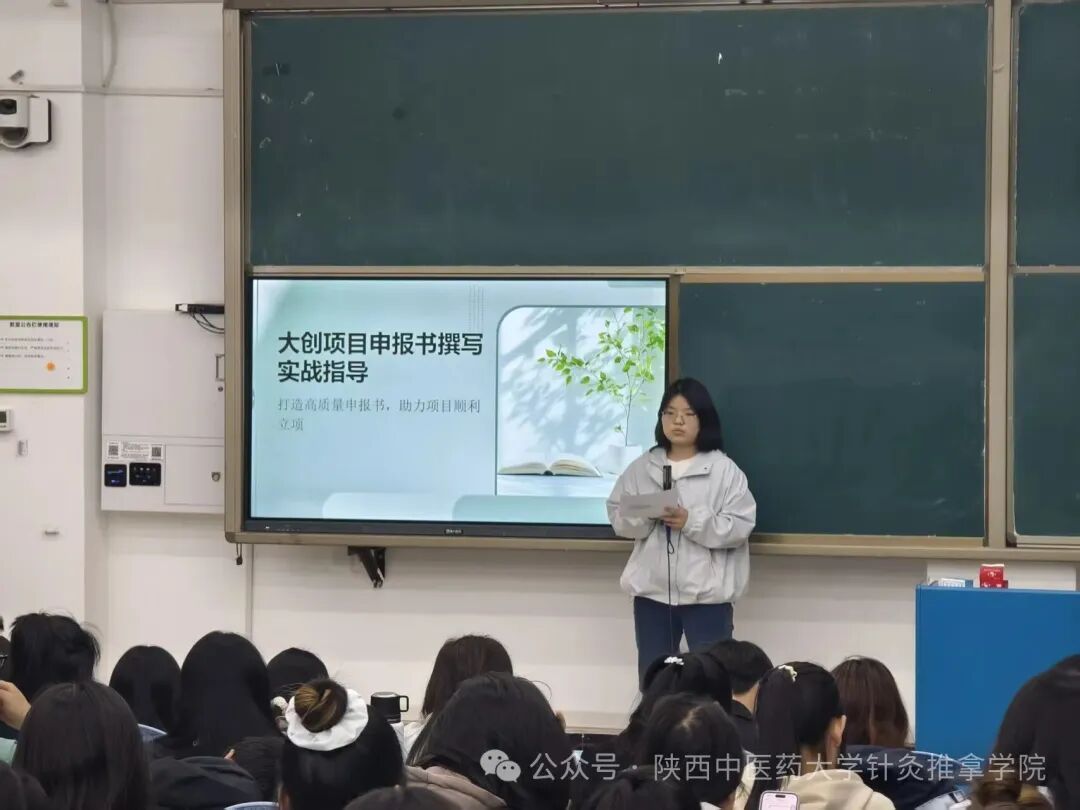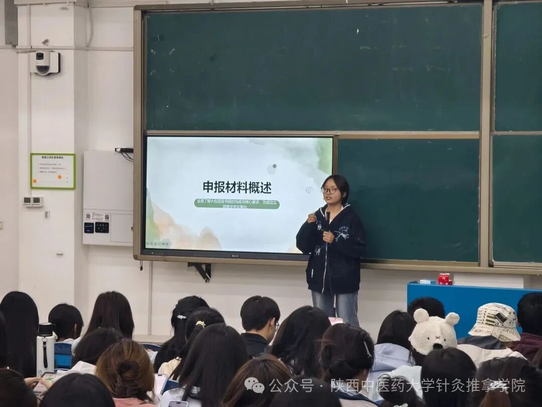 为深入推进“一站式”学生社区建设,扎实开展树立和践行正确政绩观学习教育,进一步引导学生树牢务实导向、强化实践意识,充分发挥学生党支部在创新创业教育中的引领作用,促进优质经验在学生群体中的有效传递,4月19日,针灸推拿学院学生第一党支部在2002教室组织开展“党建引领·社区育人”大学生创新创业训练项目申报经验分享主题党日活动。