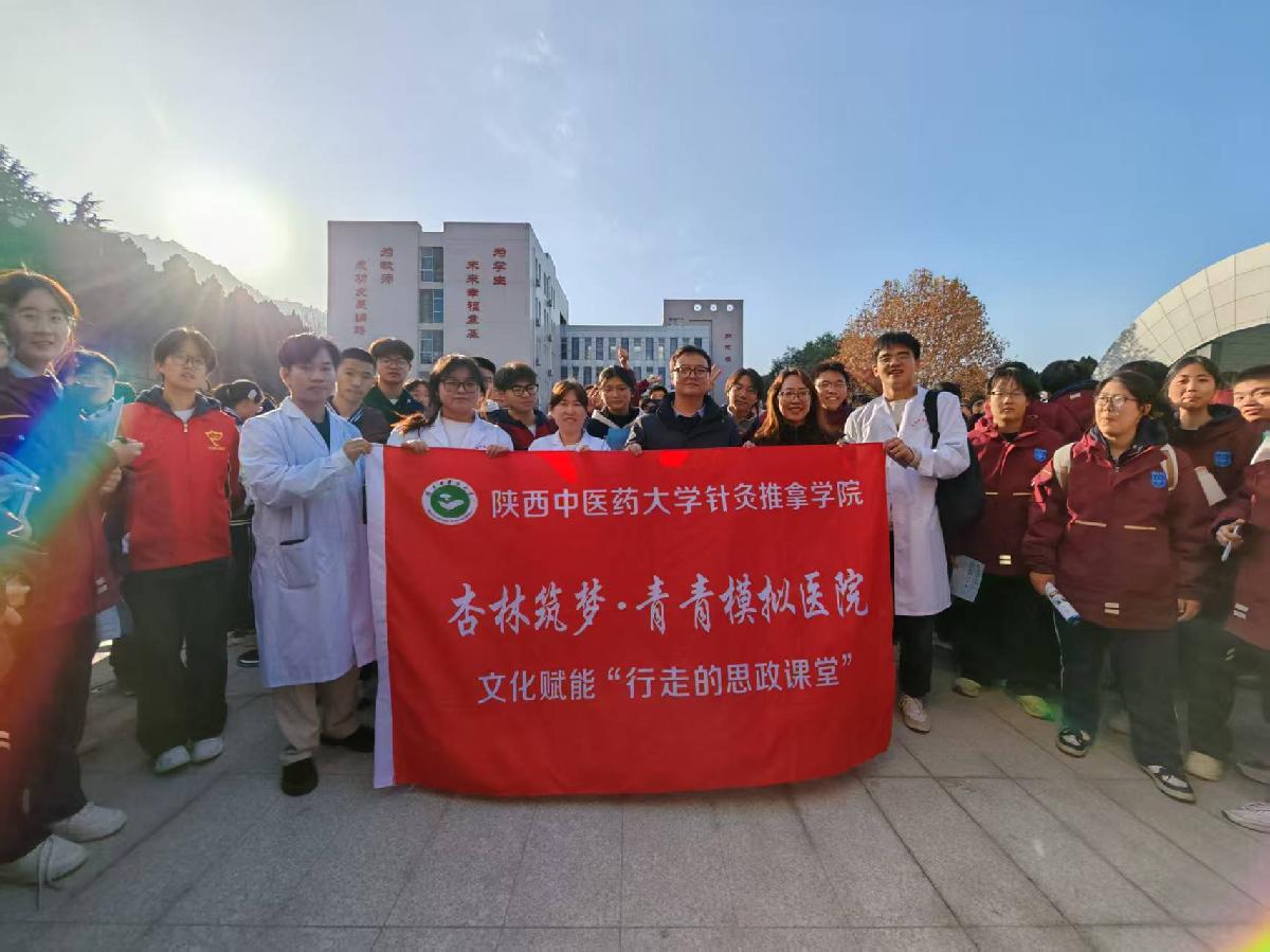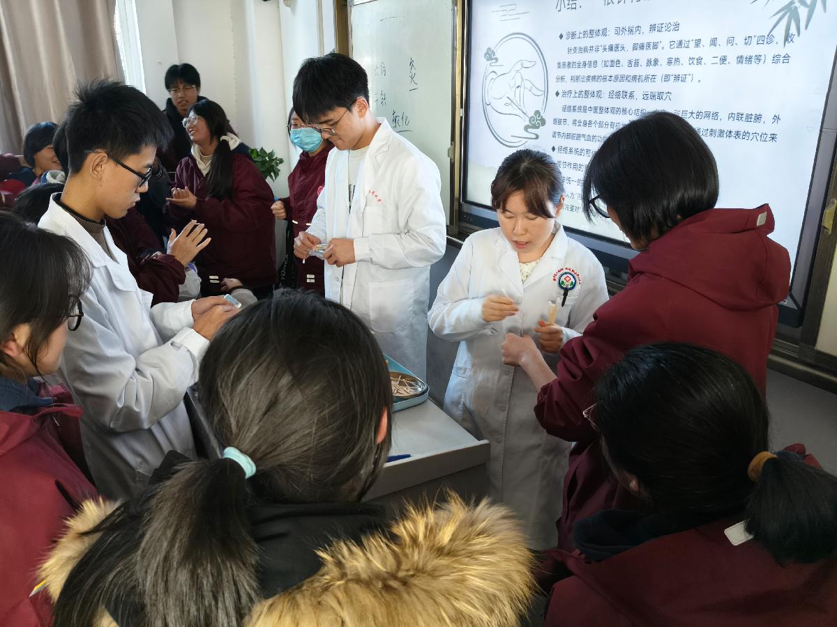 为弘扬中华优秀传统文化,让中医药智慧走进青少年群体,2025年11月20日,学院依托“青青模拟医院”实践平台,携手陕西中医药大学第二附属医院,前往西安市临潼区华清中学,开展“中医药文化进校园”主题活动。活动以沉浸式体验、互动式教学、实操性演示为特色,将古老中医药文化与青春校园生活深度融合,吸引了近500余名师生参与,赢得广泛好评。