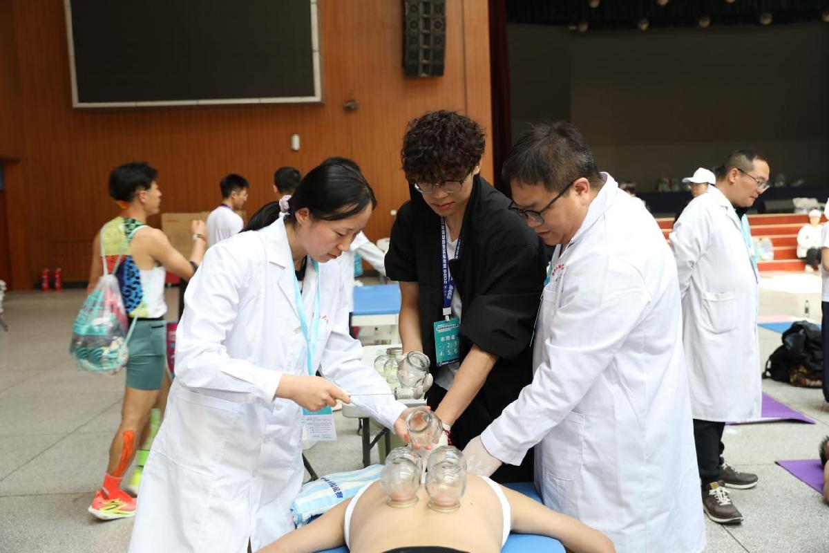 赛事当天,志愿者们身着统一服装,精神饱满、分工协作、坚守岗位。大家充分发挥专业优势,将针灸、推拿、艾灸、刮痧、拔罐等传统中医疗法与专业康复拉伸相结合,精准为完赛选手缓解肌肉紧绷、运动疲劳等赛后不适,同时细致了解选手身体状况,量身定制个性化康复方案,将中医“治未病”理念融入服务全程。志愿者们连续奋战近5小时,人均服务超30人次,累计服务突破万次,圆满完成各项保障任务。