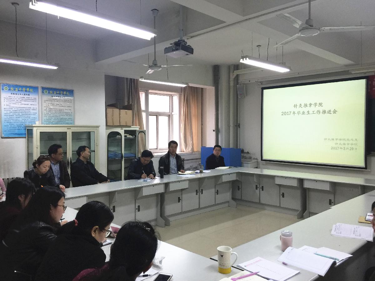 为了进一步建立健全精准就业服务机制,促进毕业生高质量就业,我院于3月29日下午召开针灸推拿学院2017年毕业生就业工作推进会,党总支书记雷正权、院长李永峰及全院28名教职工参加大会,会议由雷正权书记主持。