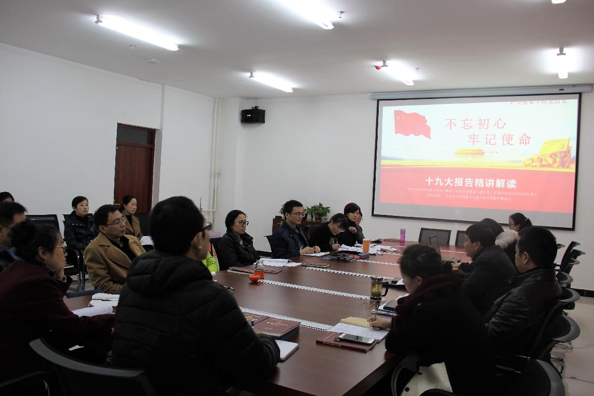11月22日下午,我院于5505会议室召开学习贯彻党的十九大精神宣讲报告会,会议由党总支书记雷正权主持,全体教师党员参加了大会。