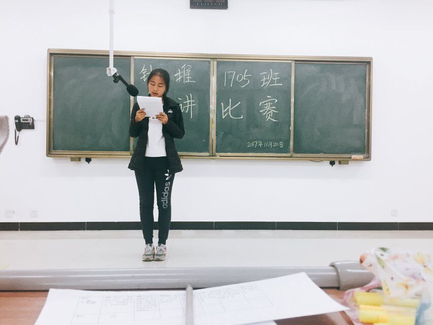 11月20日晚七点,针推1705班演讲比赛在5601成功召开。本次演讲比赛旨在加强学生对“大学”的理解和认识、引导大一新生树立正确的价值观和合理的奋斗目标,使之能在今后的学习与生活中更加自信且坚定的向前走。莅临本次活动现场的有惠建荣老师及针推五班的全体成员。