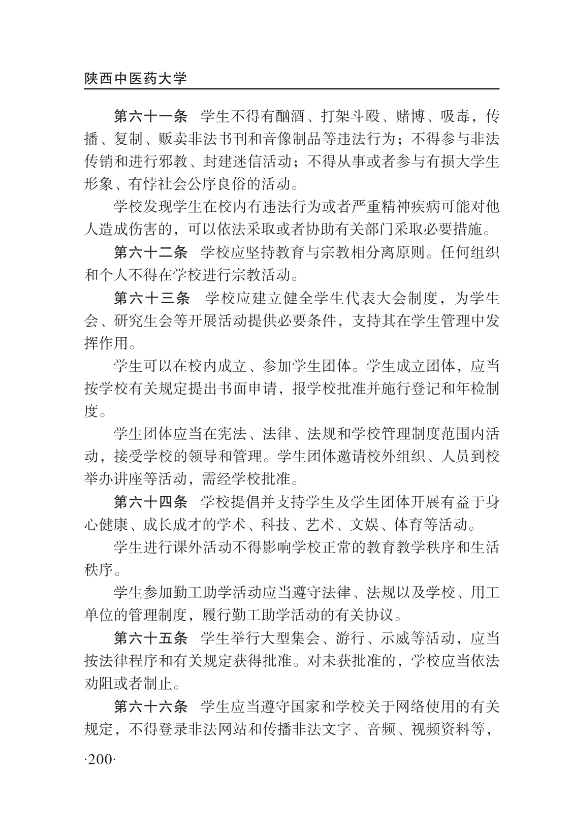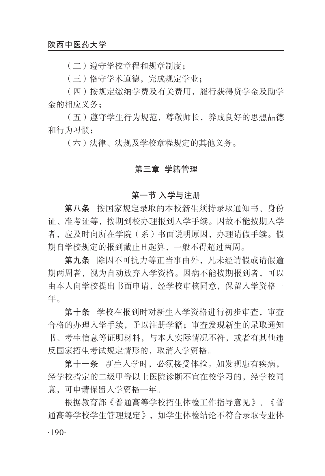 陕西中医药大学全日制本科生管理规定
