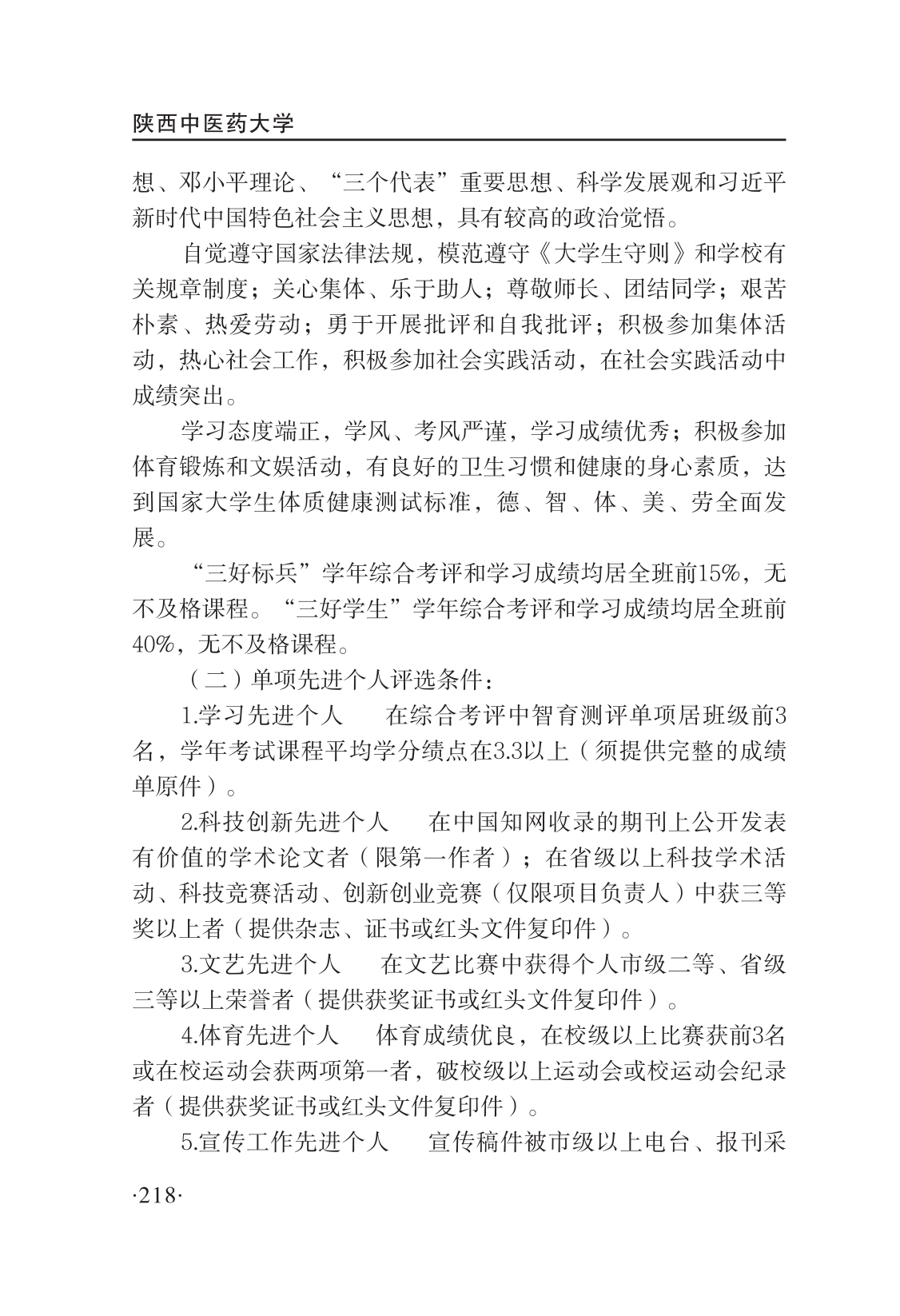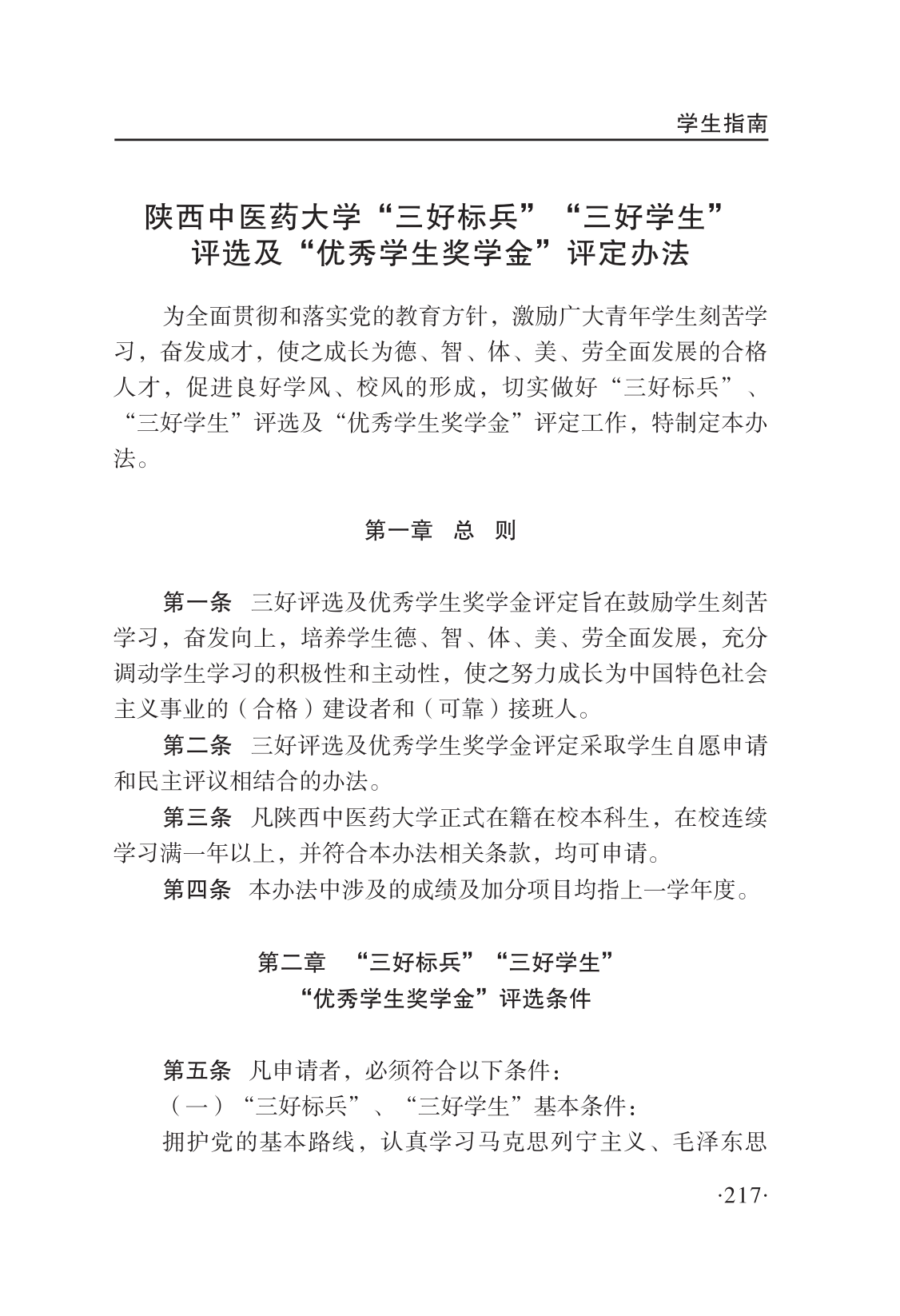陕西中医药大学“三好标兵”“三好学生” 评选及 “优秀学生奖学金”评定办法