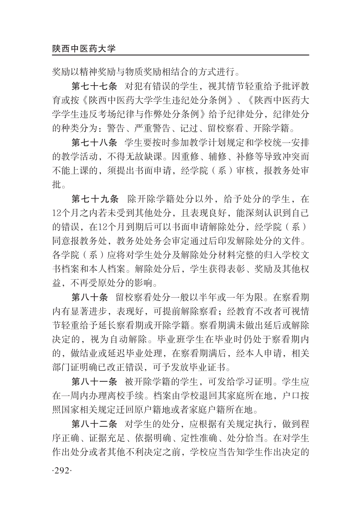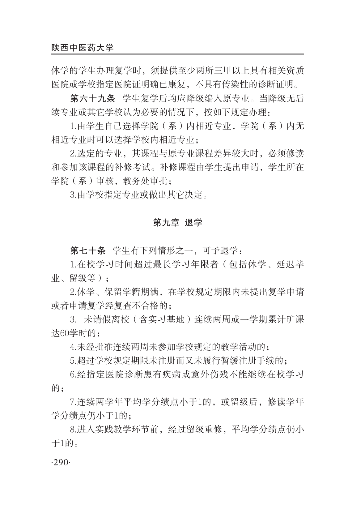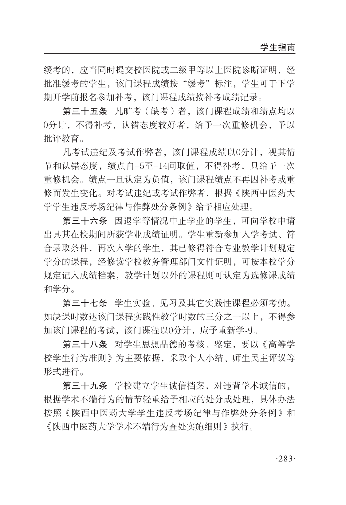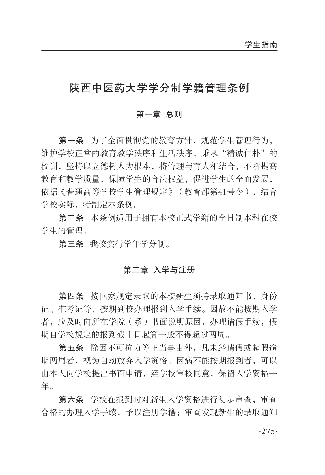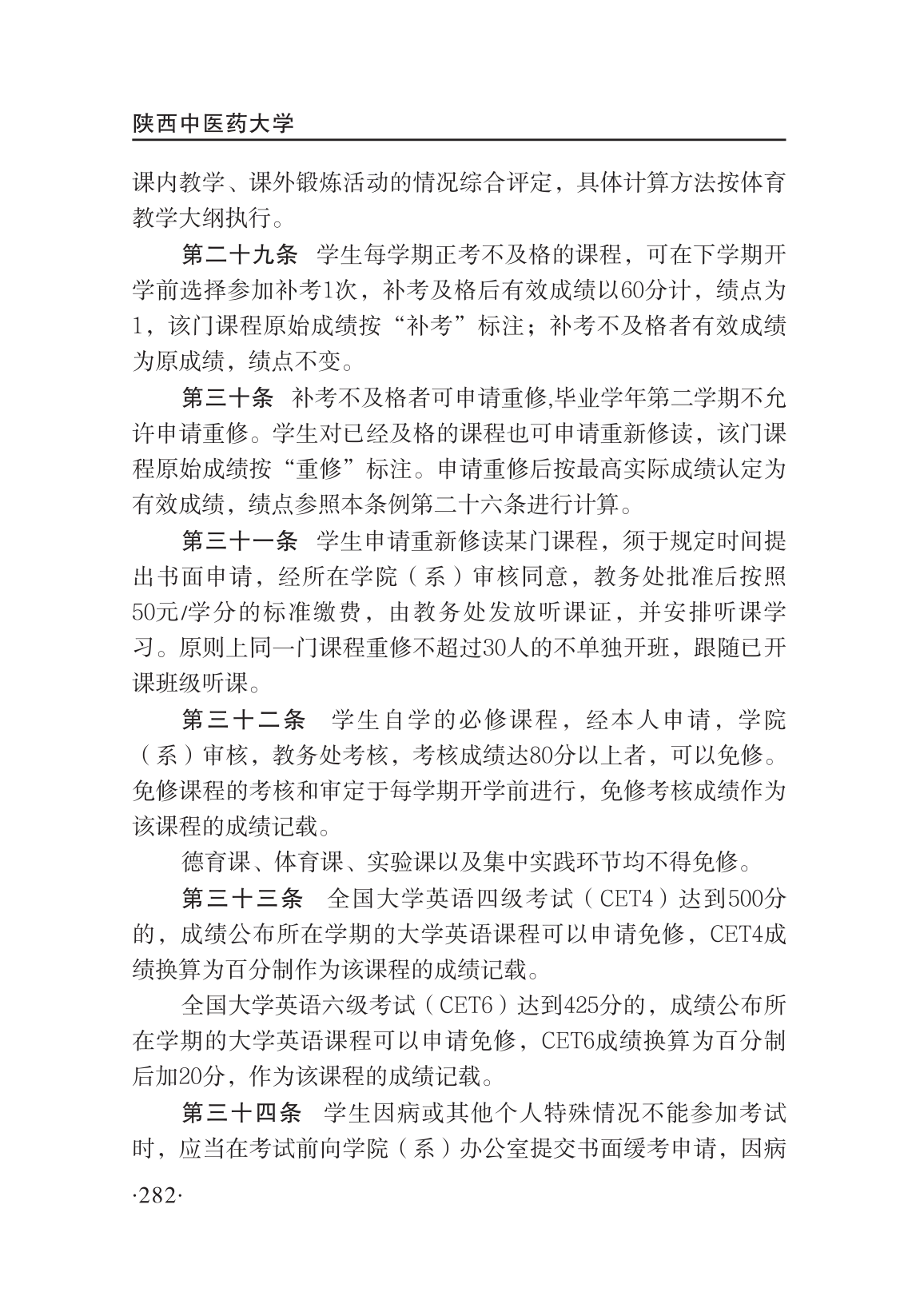 陕西中医药大学学分制学籍管理条例